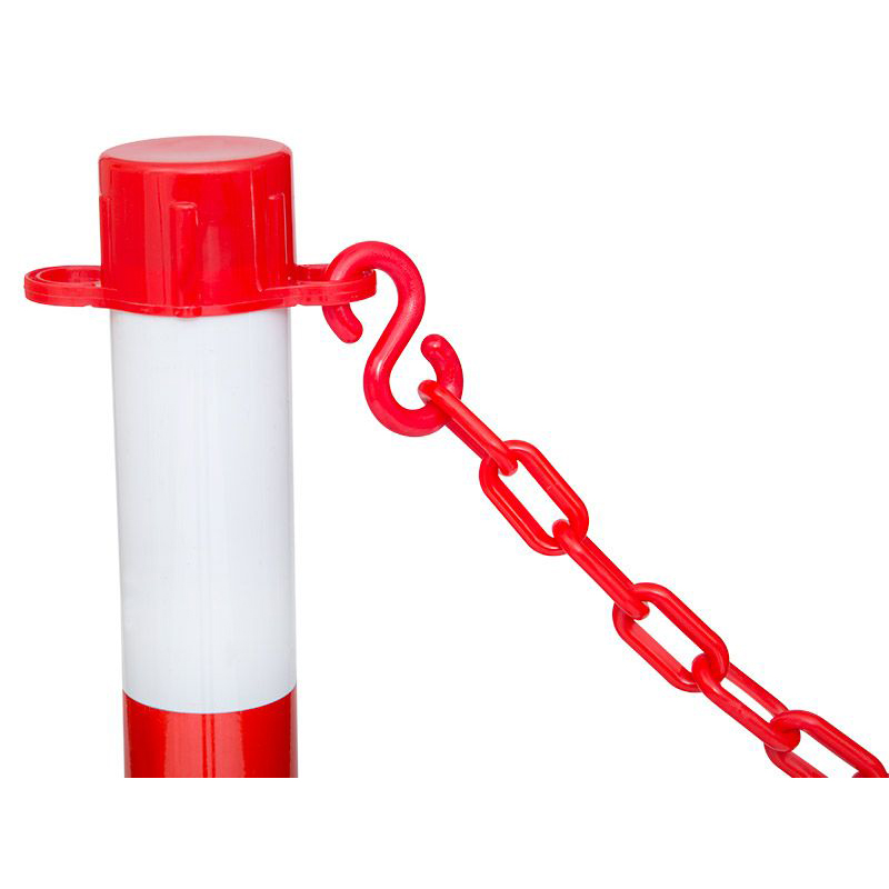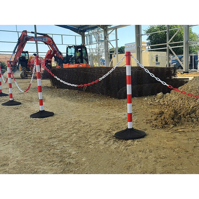Easy to build set includes 6 red & white plastic posts, 6 rubber bases & 10m of plastic chain