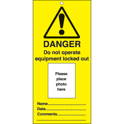 ‘Danger, Do not operate, equipment locked out’ – Photo ID Tag