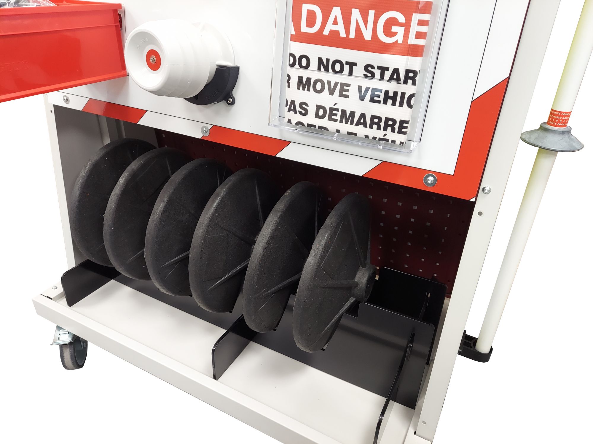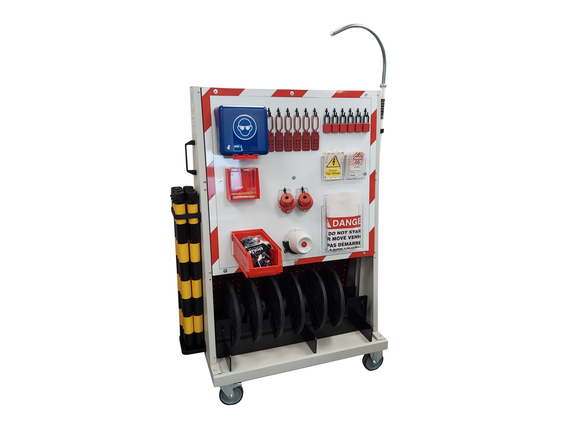 Our Mobile Workshop Station is a comprehensive and professional solution to your electrical safe working needs. This station boasts 45 different products, all of which are positioned on inclined panels for easy access and supported by a steel frame that offers durability and excellent performance, making this the ideal solution to your workshop operations.
