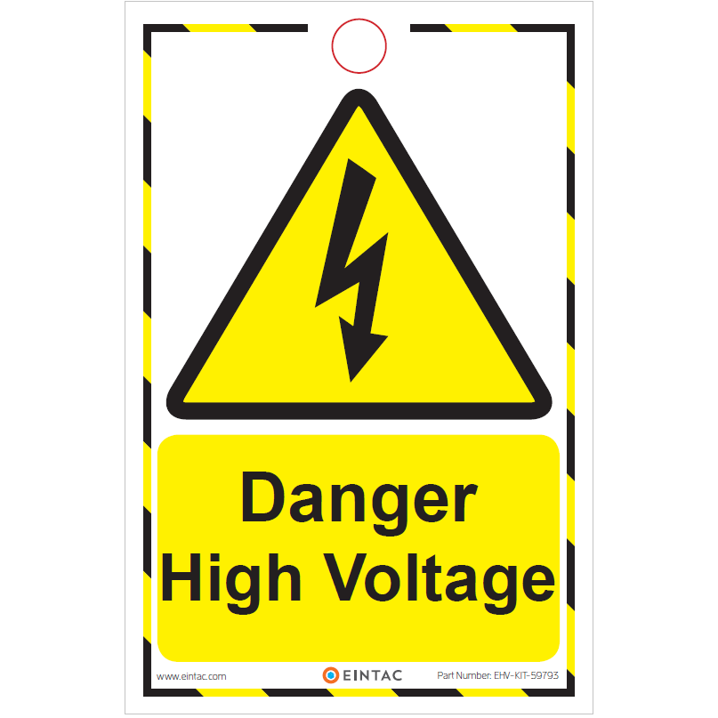 ‘Danger High Voltage’ Sign for use inside of a vehicle as a warning.