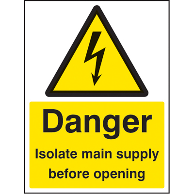 ‘Danger isolate main supply before opening’ – Lockout Sign