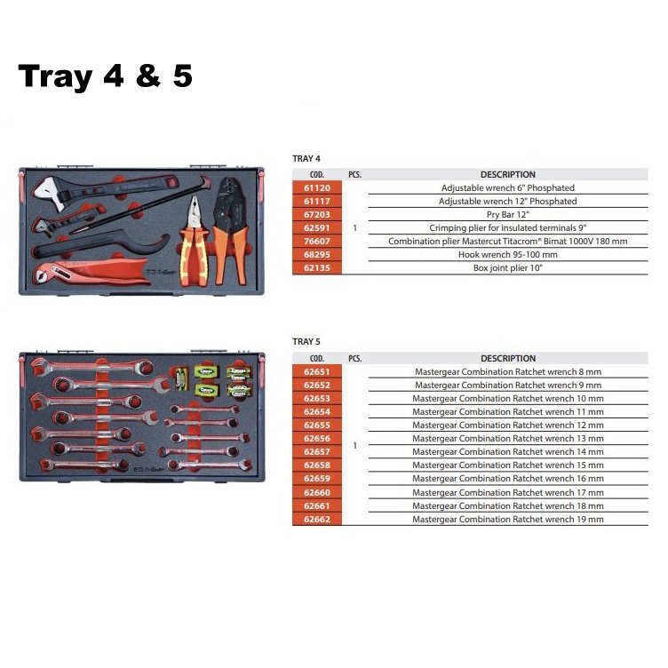- Removable tool trays.
