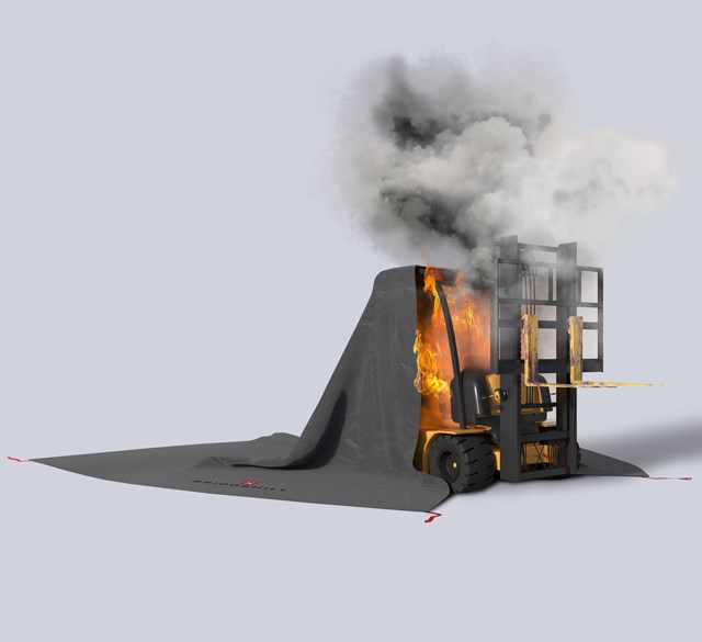Any vehicle fire is dangerous and toxic. A fork lift truck fire in a warehouse can be a disaster. The Fork Lift Truck Fire Blanket enables you to contain the flames, smoke and toxic fumes in seconds. It’s the only solution that can effectively handle fires in electric vehicles.